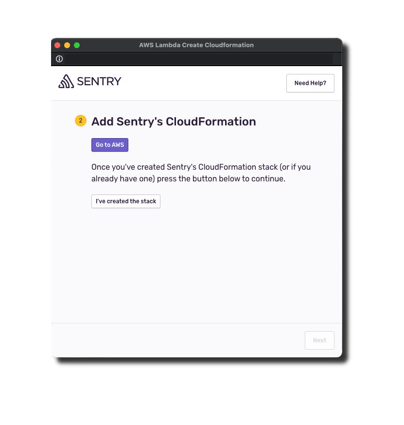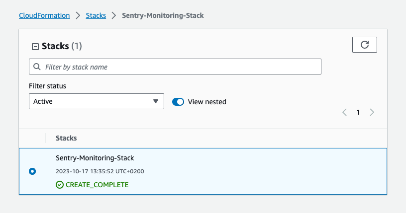 6. Wait for the stack to be created. Once it's confirmed and the status changes to Create Complete, click I've created the stack in the Sentry popup.